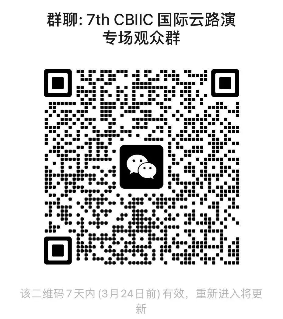 专场交流群:欢迎参会嘉宾扫码加入“第七届CBIIC国际云路演专场”交流群,与路演汇报人进行互动交流。
