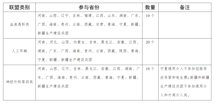 根据去年12月河南省医保局发布的《关于成立血液透析类等三个医用耗材省际联盟的公告》,河南、河北、山西、内蒙古、辽宁、吉林、黑龙江、安徽、福建、江西、山东、湖南、广东、广西、海南、贵州、云南、西藏、陕西、甘肃、青海、宁夏、新疆和新疆生产建设兵团等二十四省(自治区、兵团)分别组成三个省际联盟。