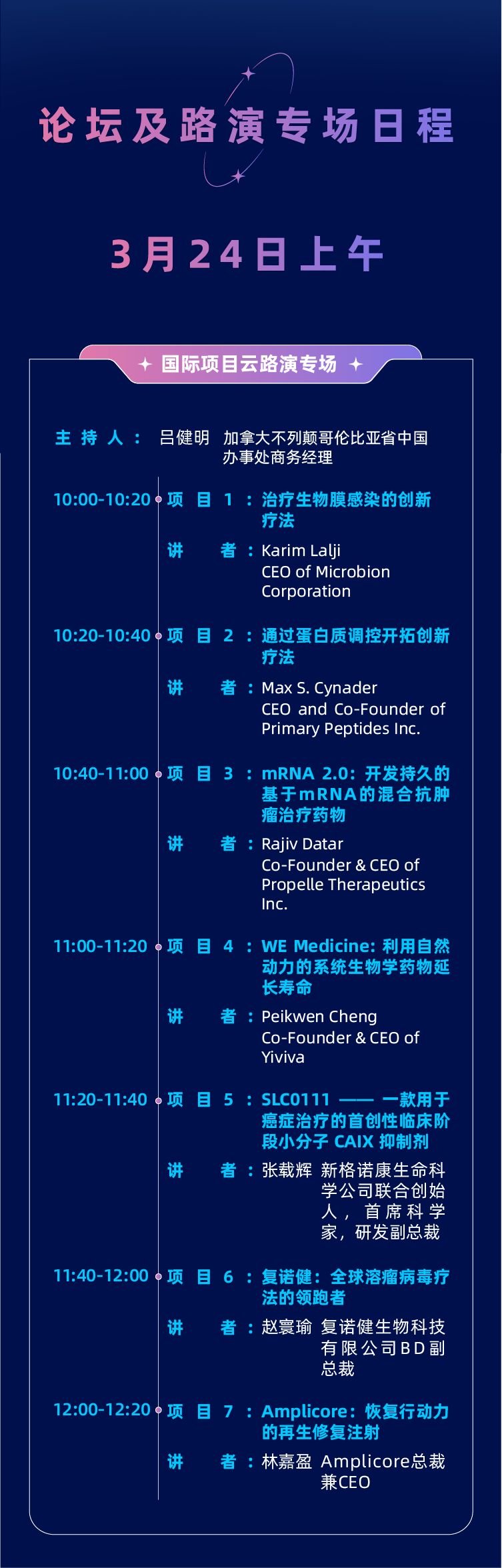支持单位:新加坡经济发展局、香港生产力促进局、香港贸易发展局、南方医药经济研究所、苏州工业园区、加拿大不列颠哥伦比亚省中国办公室、中关村股权投资协会、美国癌症研究基金会、日本制药工业协会、香港生物医药创新协会、BioCentury
