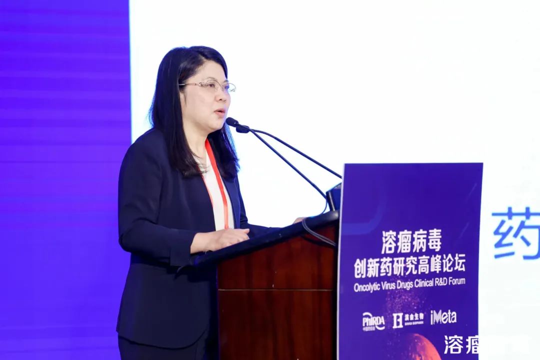 黄云虹教授就“溶瘤病毒类药物临床试验设计指导原则”,向与会嘉宾和观众分享了溶瘤病毒类药物和特点、指导原则起草过程与主要内容。她结合2021年2月9日国家药监局药审中心发布《溶瘤病毒类药物临床试验设计指导原则(试行)》,对临床试验设计要点和风险控制给出了详细的说明。她强调在审批过程中需加强沟通交流,由于审评时间有限,研究者与审评方提前从研发角度和审评角度进行沟通,可增进双方的了解,有利于畅通后续的申报和研发路径。