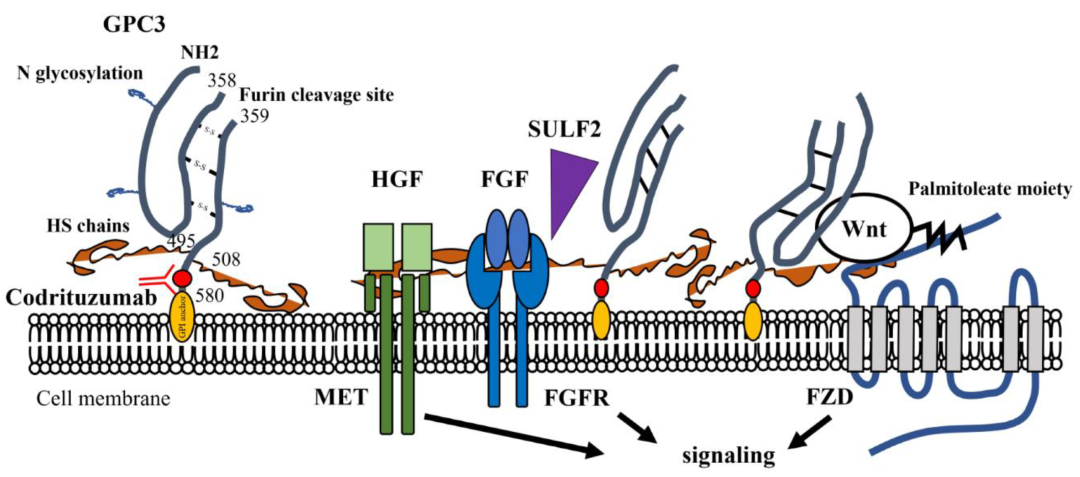 GPC3分子结构和参与HCC的信号通路