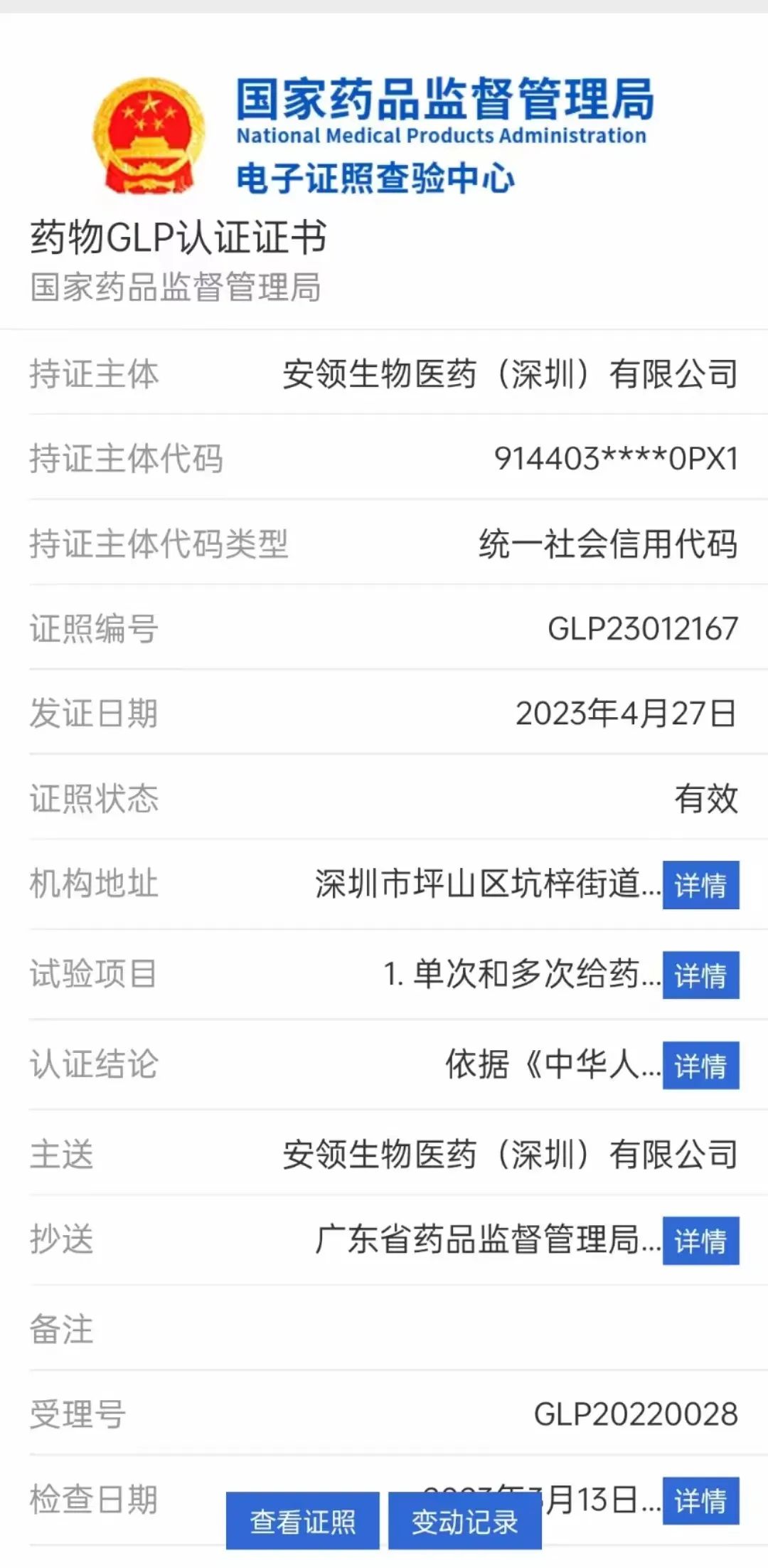 近日,滬港中科全资子公司——安领生物医药(深圳)有限公司(以下简称“安领(深圳)”)收到国家药品监督管理局签发的GLP证书(注册号为:GLP23012167),顺利通过NMPA GLP 8项认证。这标志着安领(深圳)运行的药物评价中心,经过国家药品监督管理局严格的现场检查,在组织管理和人员、仪器设备和实验材料、标准操作程序以及试验运行等方面均符合国家GLP要求。