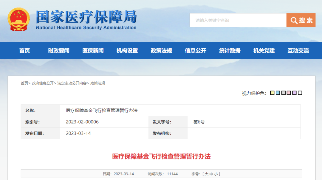 今年3月,国家医保局官网发布《医疗保障基金飞行检查管理暂行办法》(下称《办法》),并将于今年5月1日正式实行。