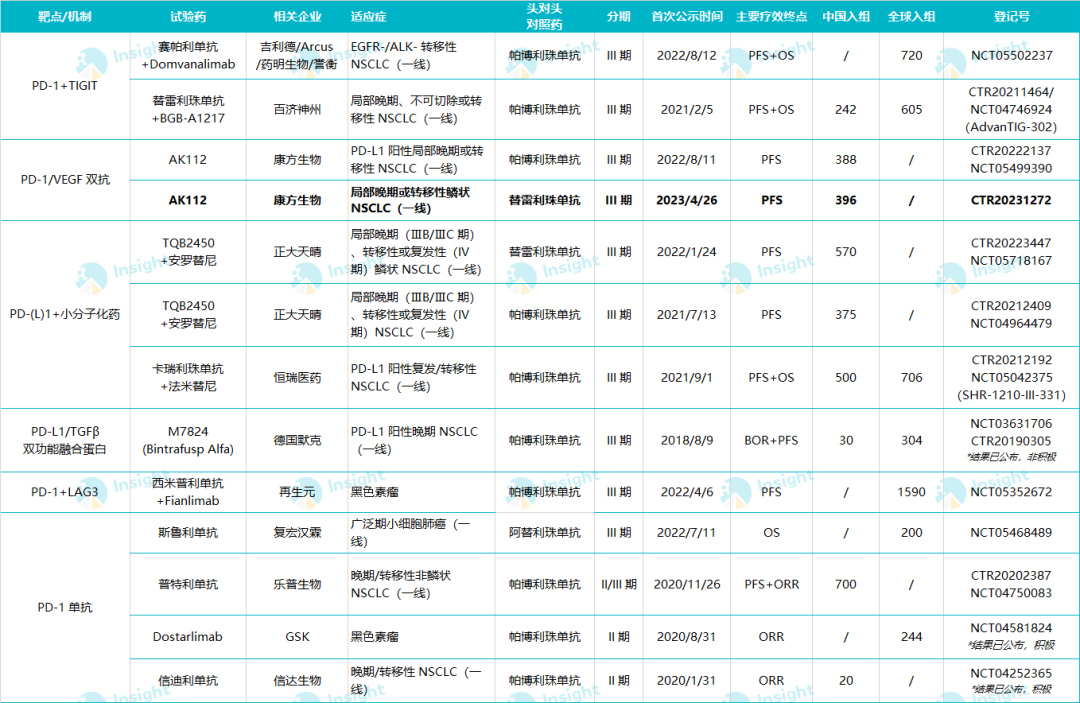 附:PD-1 头对头全球临床试验登记(Insight 整理)