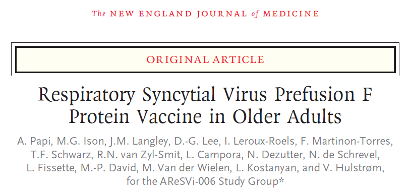 2023年2月,《新英格兰医学杂志》(NEJM)发表了题为:Respiratory Syncytial Virus Prefusion F Protein Vaccine in Older Adults 的临床研究论文。