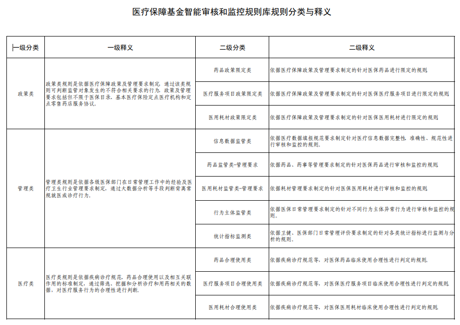 5月15日,国家医保局发布《关于医疗保障基金智能审核和监控知识库、规则库框架体系(1.0版)的公告》
