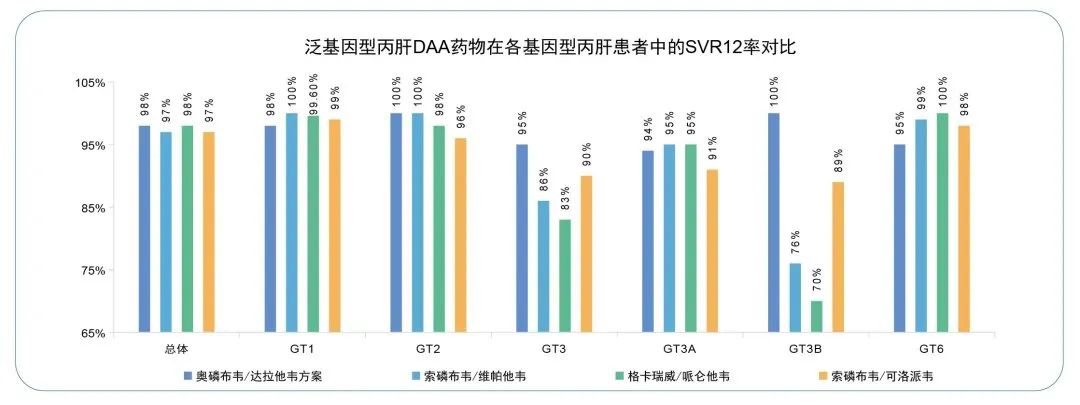 现有泛基因型丙肝治疗手段疗效对比