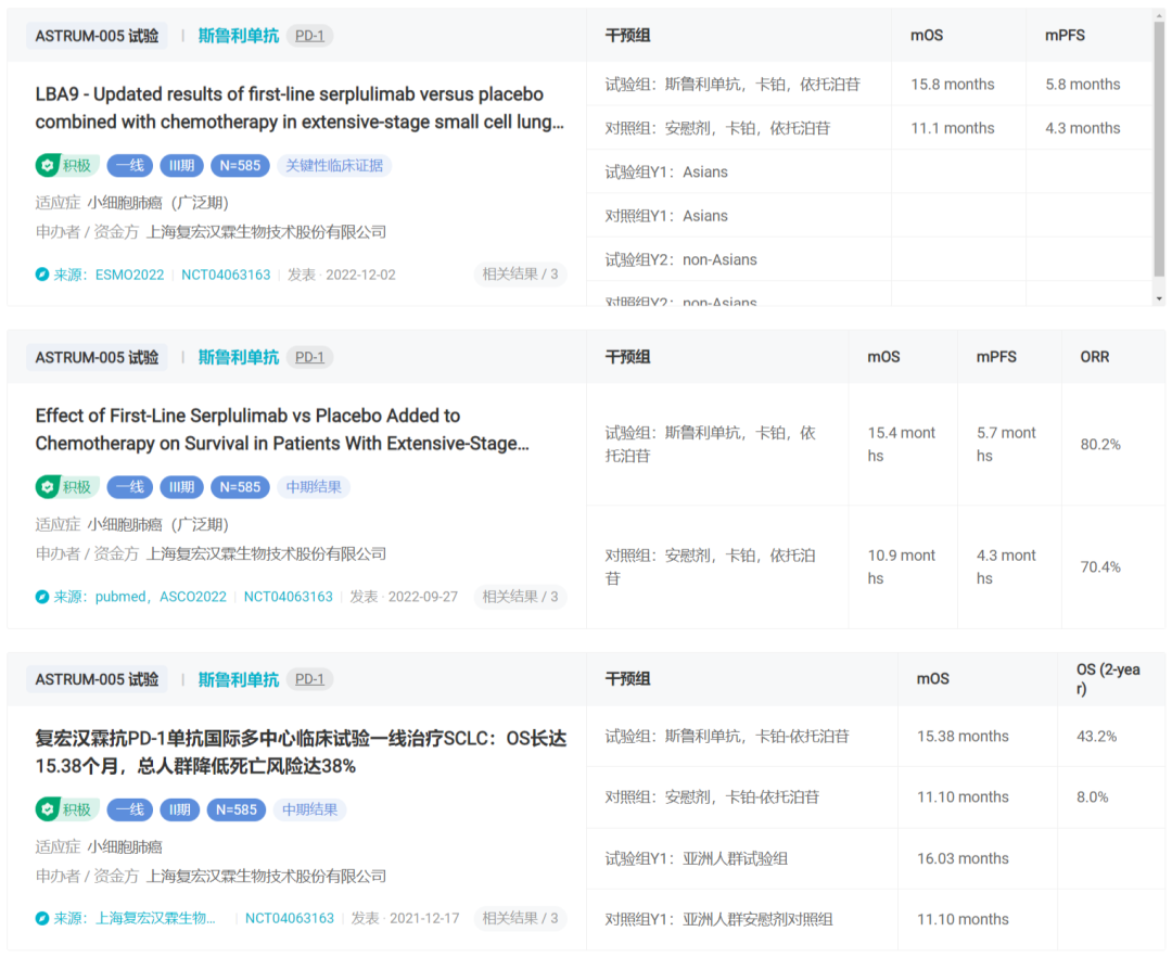斯鲁利单抗一线 SCLC 已披露临床数据概览