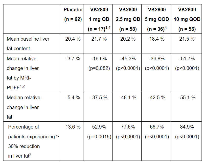 ▲VK2809的2b期临床试验主要终点数据(图片来源:参考资料[1])