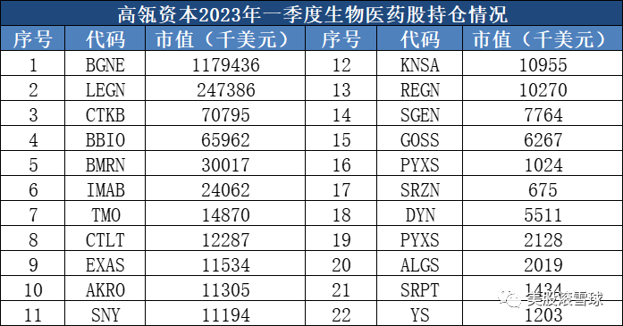 第一大仓位仍是百济神州,持仓市值达11.79亿美元,因百济神州股价变动,较上季度的12.04亿美元有所下降。