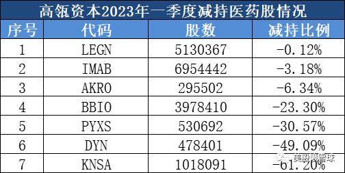 BBIO:公司于今年3月发布了infigratinib治疗软骨发育不全症的积极三期数据,股价也是在一季度暴涨117.59%,高瓴资本借此机会减仓23.30%。