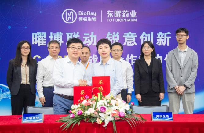 2023年5月19日,东曜药业(股票代码:1875.HK)宣布与浙江博锐生物制药有限公司(以下简称博锐生物)达成战略合作,博锐生物CEO王海彬博士与东曜药业CEO刘军博士出席签约仪式。东曜药业将以一站式、端到端的CDMO服务平台,为博锐生物提供多个研发项目的全方位支持,助力博锐生物抗体偶联药物(ADC)管线从研发到IND,以及未来临床批准与商业化生产。