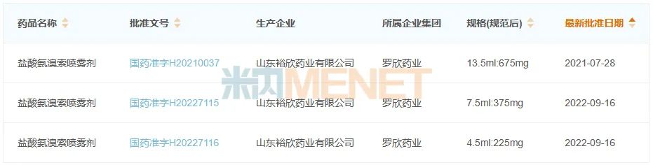 图1:盐酸氨溴索喷雾剂的最新批文情况