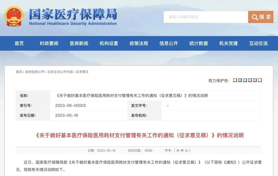 5月23日,医保局发布《关于做好基本医疗保险医用耗材支付管理有关工作的通知(征求意见稿)》的情况说明,将逐步淘汰单纯依据费用水平分段支付、一刀切的定额或限额支付等较为粗放的支付政策,探索制定医用耗材医保支付标准,建立与DRG、DIP支付方式改革等政策的协同推进机制,逐步实现以省为单位医用耗材支付政策的统一。