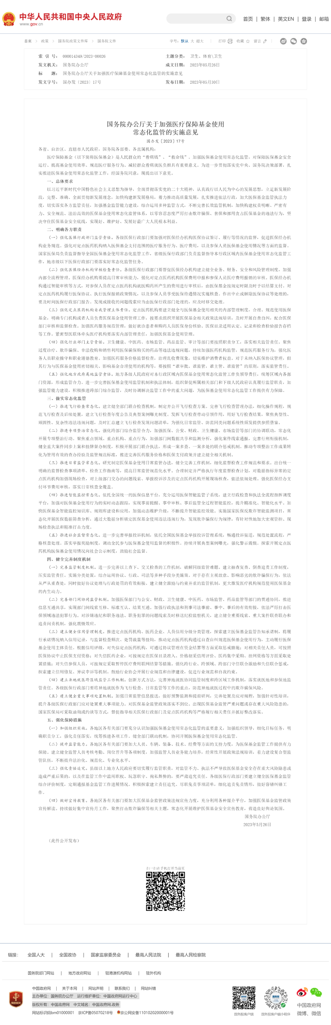 5月30日,国务院办公厅印发《关于加强医疗保障基金使用常态化监管的实施意见》(以下简称《意见》)。