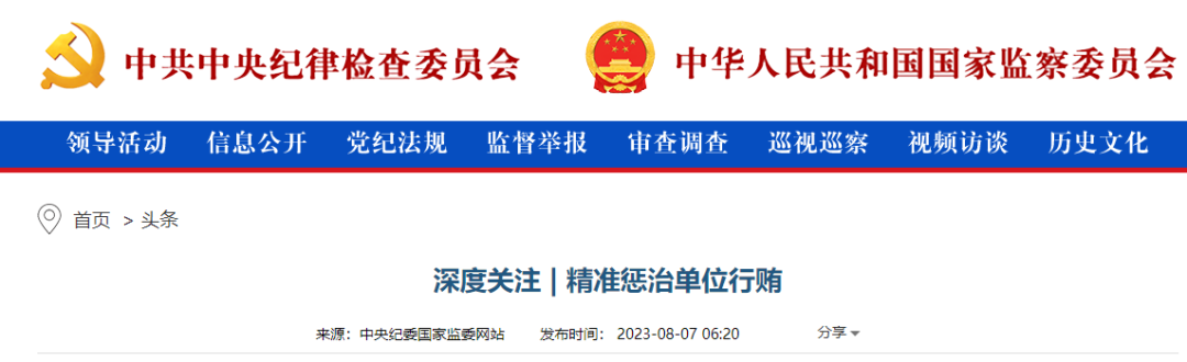 8月7日 ,中纪委网站发布《深度关注 | 精准惩治单位行贿》一文,在行贿犯罪行为的区分认定及量罪定刑上提出进一步规范,释放强烈反腐信号。