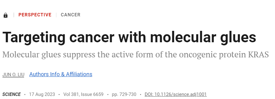 今日,顶尖科学期刊《科学》上发表的一项重磅研究中,Revolution Medicines公司和纪念斯隆-凯瑟琳癌症中心的科学团队展示了使用小分子药物靶向“不可成药”靶点的新策略。同期发布的评论文章指出,这种结合结构生物学、理性设计和医药化学的设计方法,与高通量筛选相结合,有望更快开发分子胶疗法,靶向多种“不可成药”靶点。