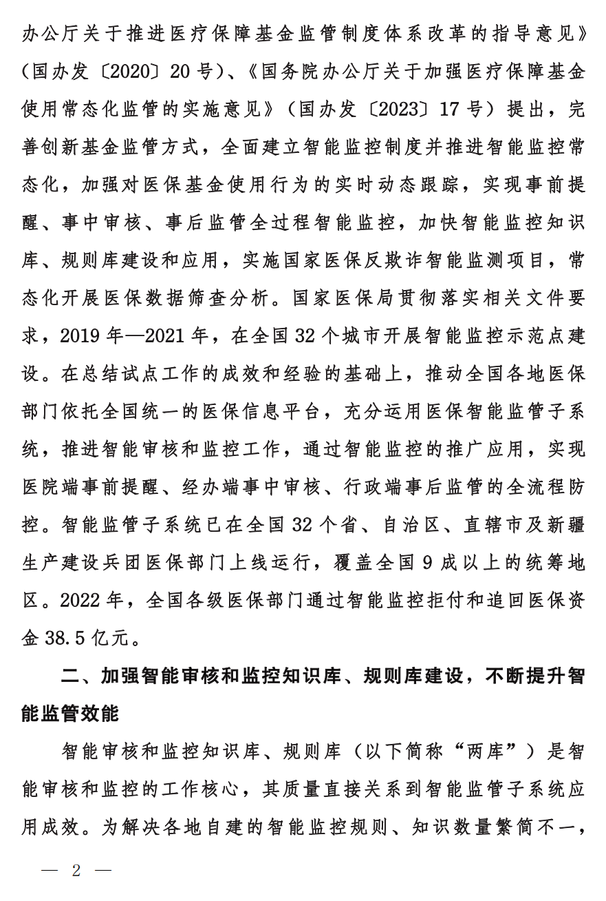 针对全国人大代表提出的“关于利用人工智能技术促进医保基金监管工作高质量发展的建议”,国家医保局答复称,国家医保局贯彻落实党中央、国务院决策部署,建立智能监控制度,2019 年-2021年,在全国 32 个城市开展智能监控示范点建设。加强智能审核和监控知识库、规则库建设,不断提升智能监管效能。强化现代信息技术应用,运用大数据赋能基金监管工作。