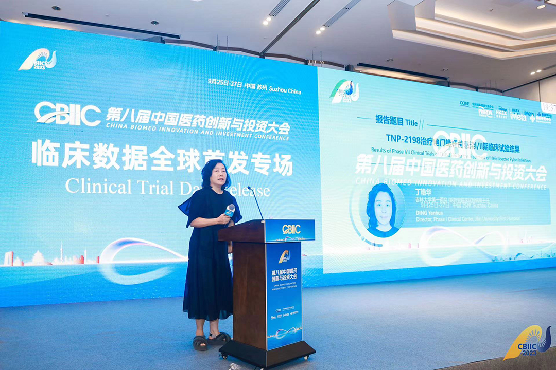 中国苏州,2023年9月25日 ─ 在第八届“中国医药创新与投资大会”临床数据全球首发专场上,吉林大学第一医院丁艳华教授首次报告丹诺医药开发的新药产品 ─ 瑞法舒坦唑(TNP-2198)治疗幽门螺杆菌感染的I/II期临床试验结果。