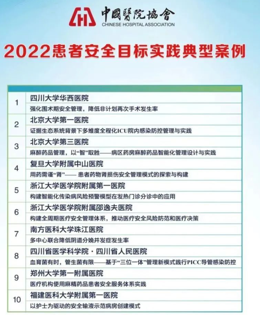 此前,各学协会及各省市都曾发布患者安全相关目标与计划。如2022年9月,中国医院协会曾发布《中国医院协会患者安全行动计划框架》(2023-2025)、《2022年患者安全目标实践典型案例》。
