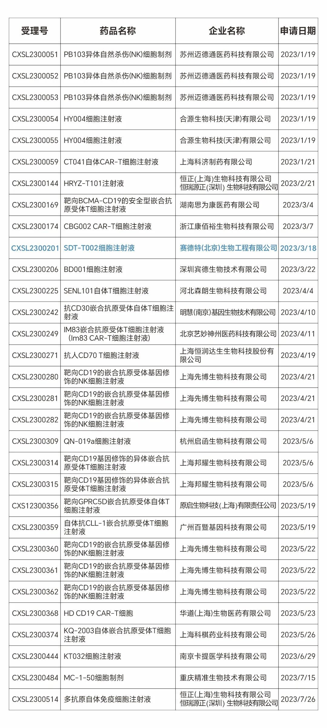 在国内,细胞治疗药物开发也日趋白热化。据统计,2023年1—7月,国家药监局受理的细胞治疗药物IND已有50个(以受理号计),其中约30项是免疫细胞药物的IND。
