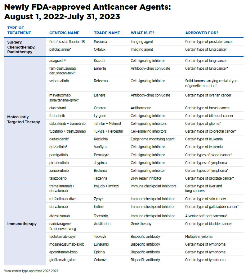 (2022年8月至2023年7月间FDA批准的抗癌疗法,图片来源:参考资料[1])
