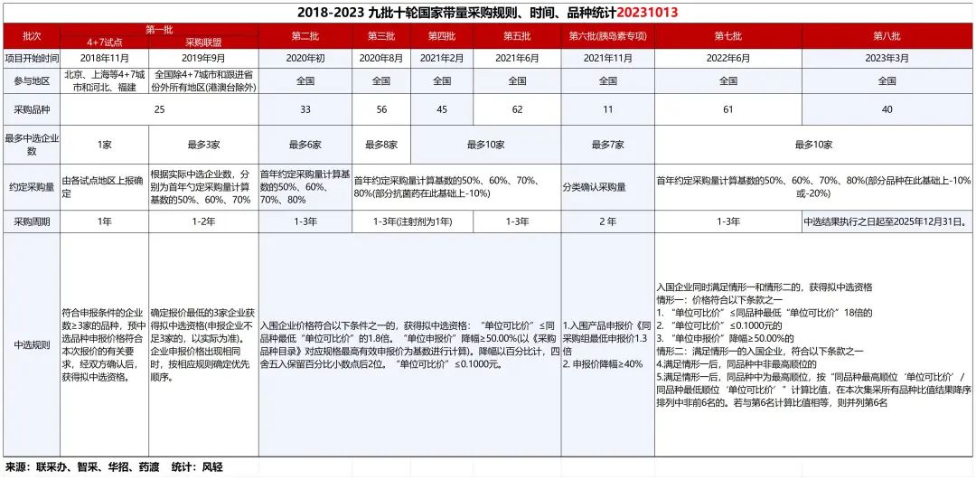 10月13日8时许左右,国家九批十轮国采终于到来!新形势,新国采,新调整,新应对。先看第一张图,一至九批十轮国采规则、品种大全图表。