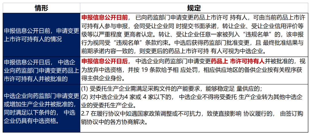 同时,在规则层面,尤其是在开标前后,上市许可持有人变化及生产企业变化层面,出现了一些重要的调整,梳理如下: