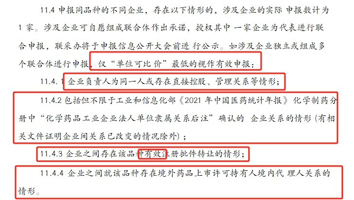 申报同品种的不同企业,存在以下情形的,涉及企业居于入 围企业非末位的获得入围资格。入围后,涉及企业排名顺位全部向 后调整一位: