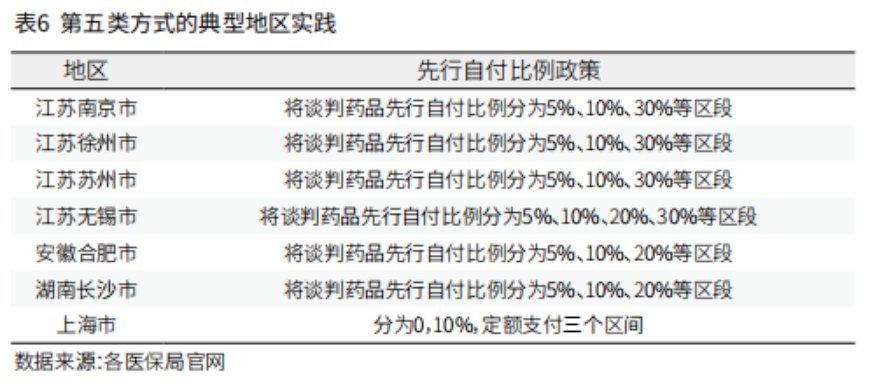 5、方式五:差异化形成多个国谈药先行自付比例区间