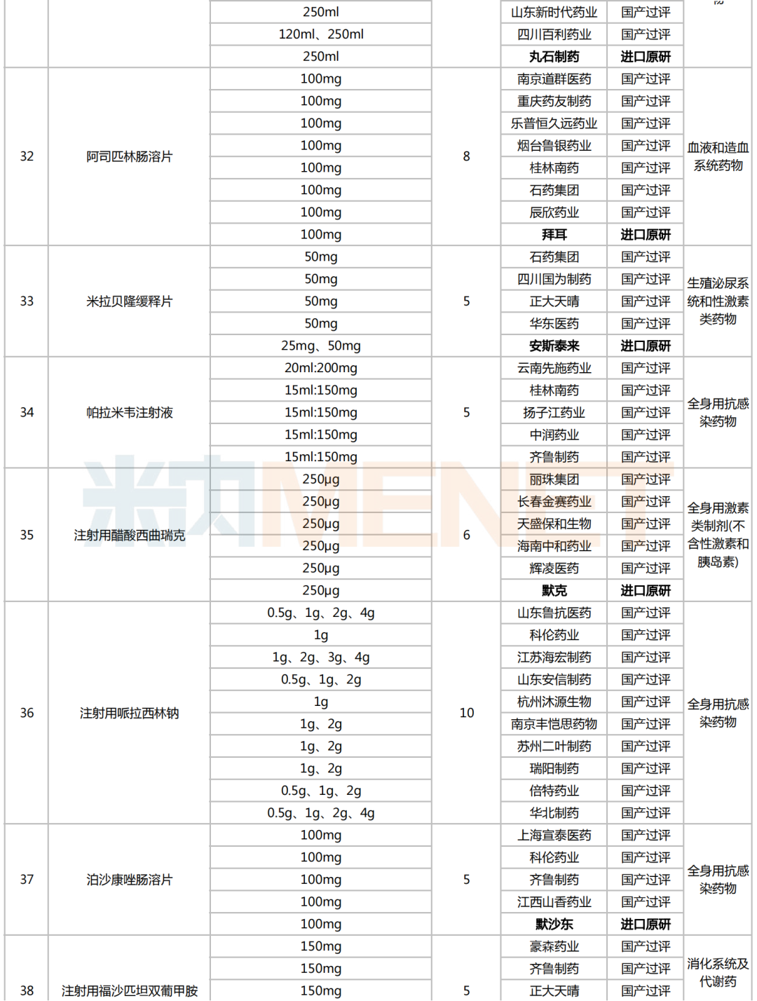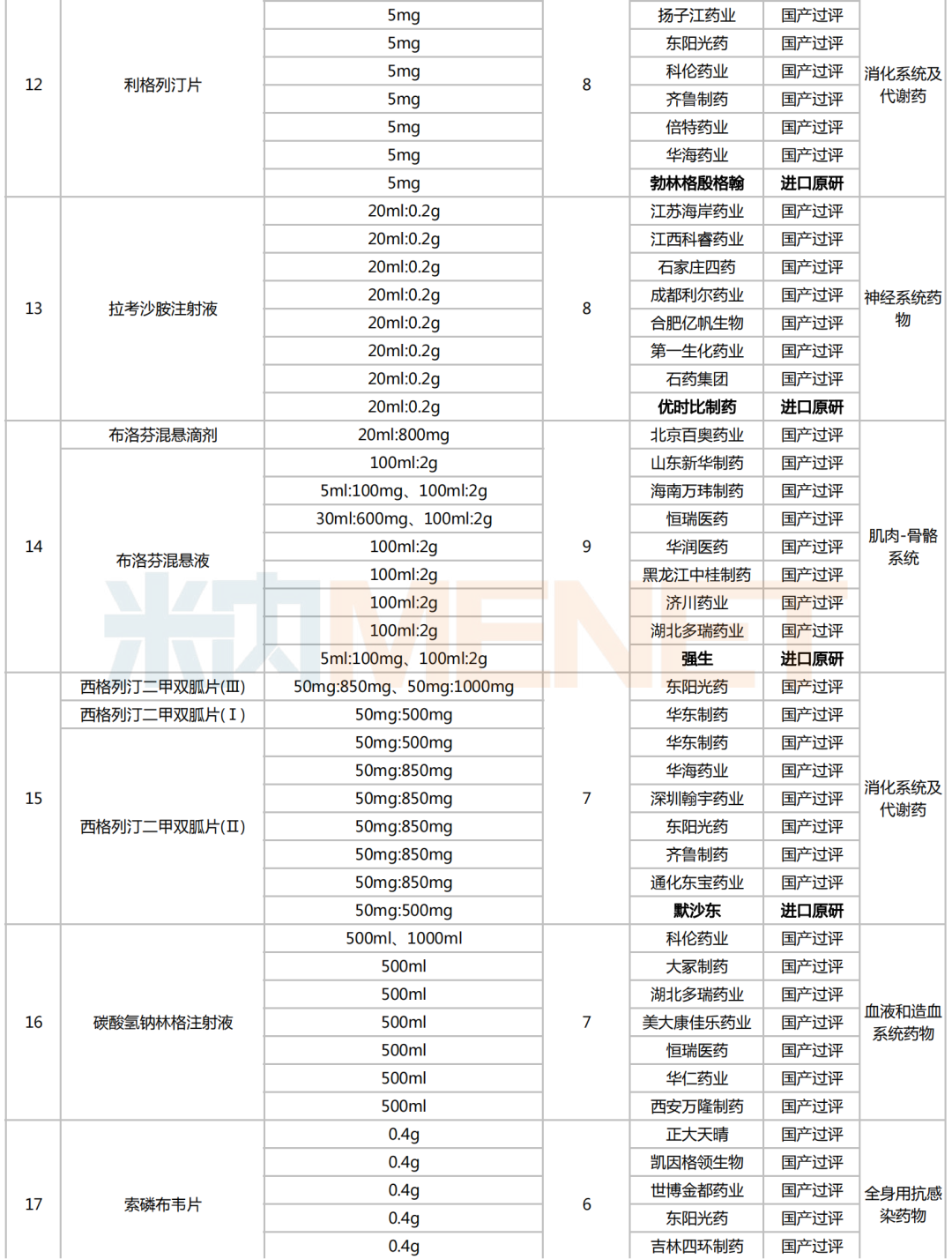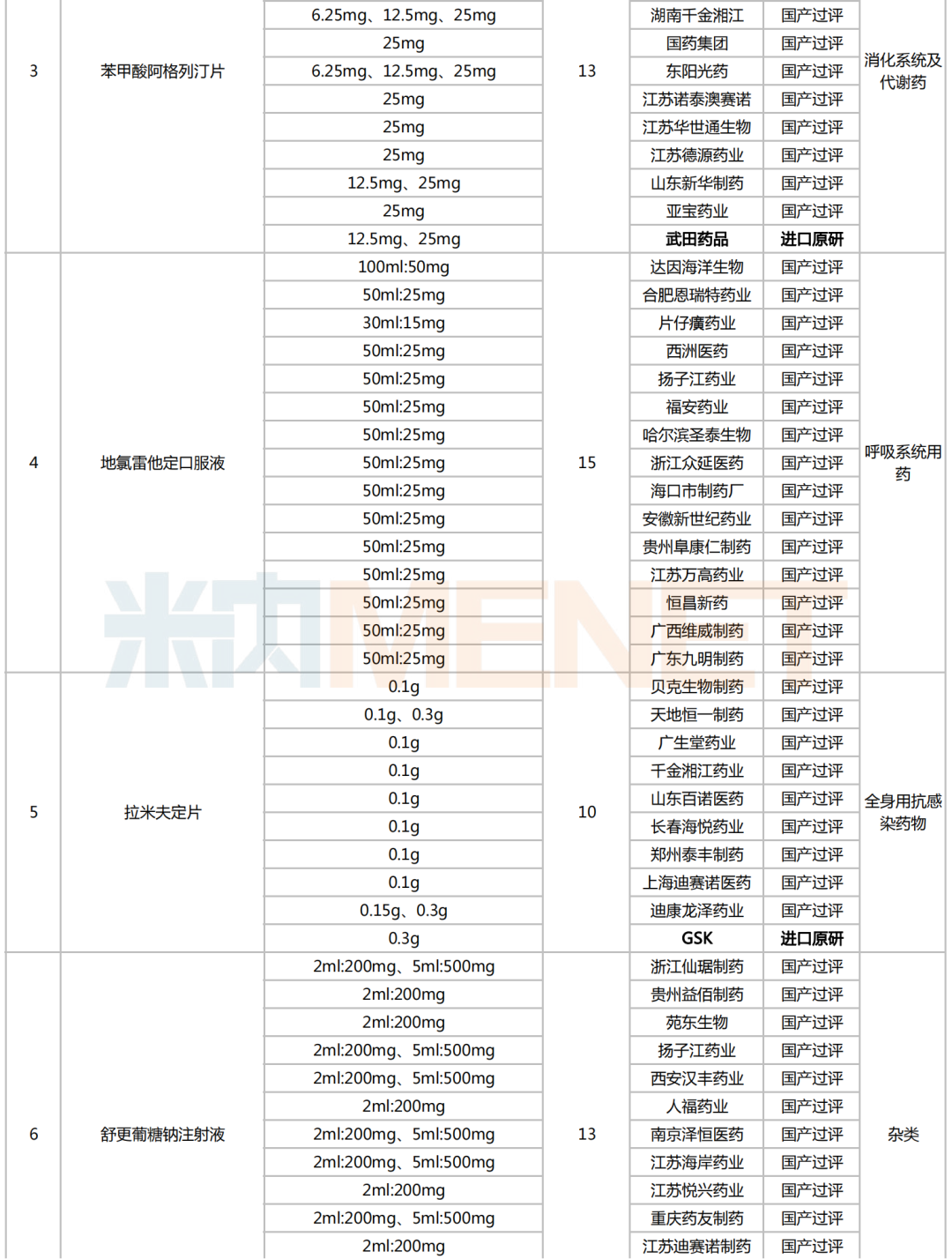 附:符合申报条件企业数≥5家且未纳入国采的化学药名单