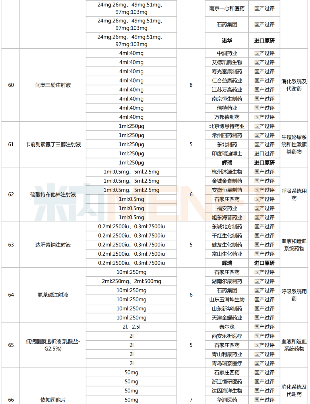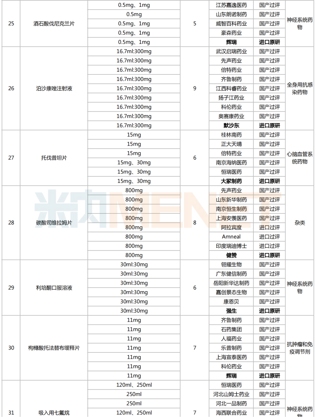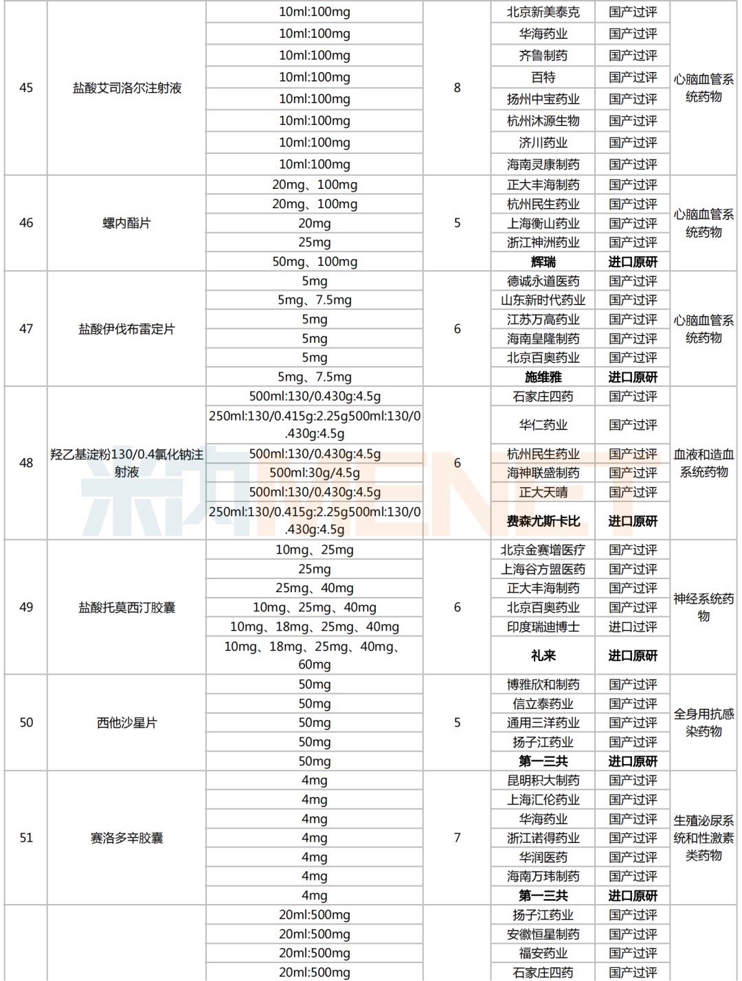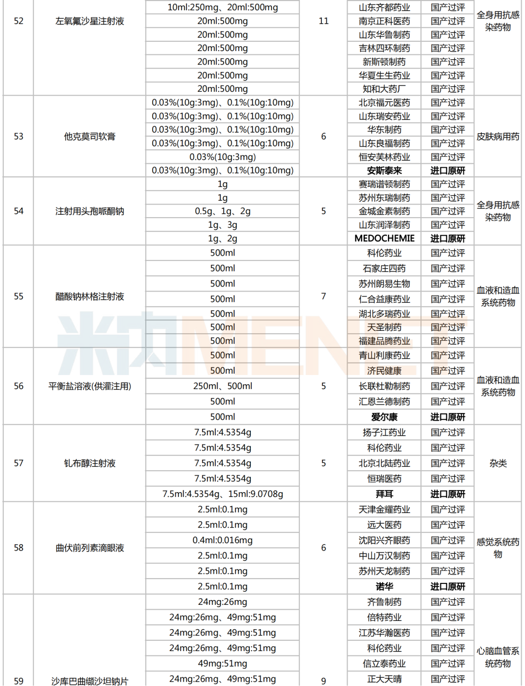 附:符合申报条件企业数≥5家且未纳入国采的化学药名单