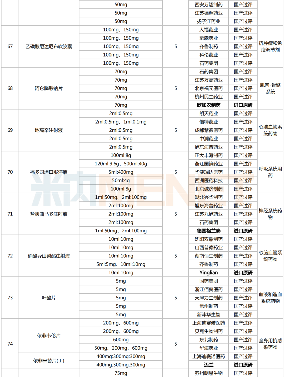 78个品种中,涉及过评品种数达10个及以上的国内企业(按集团计)有6家,包括正大制药、扬子江、齐鲁、科伦、石药、倍特等;跨国药企中,默沙东、辉瑞也有多个原研产品在列。