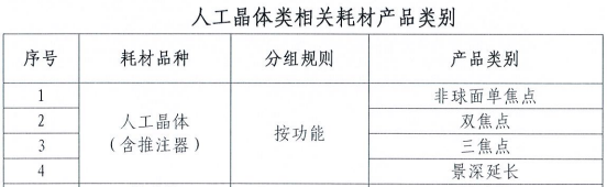 再者,从最初国采方案意见征集到基本定稿,在耗材品目分类上联采办还是积极听取了行业意见,尽可能让方案更科学,体现价值购买,展现成熟自信。例如人工晶体,最初产品分类如下: