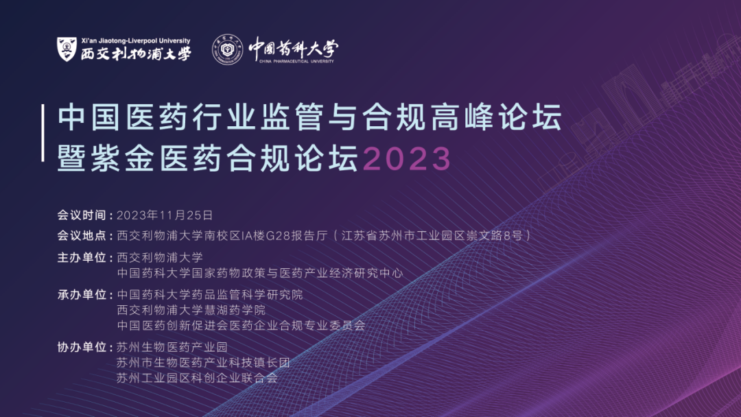 由中国医药创新促进会(简称中国药促会)医药企业合规专委会承办的“中国医药行业监管与合规高峰论坛暨紫金医药合规论坛”,将于2023年11月25日在江苏苏州西交利物浦大学慧湖药学院召开,聚焦医药行业监管与合规的热点与前沿话题,促进医药行业的高质量发展。