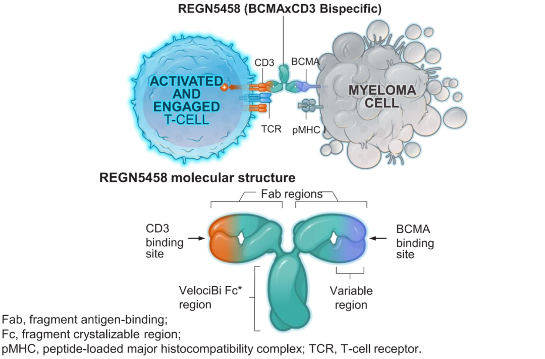 Linvoseltamab是一款在研BCMA/CD3双特异性抗体,结合了再生元独有的全人源抗体技术VelocImmune和全长双抗技术平台VelociBi,与人体天然的抗体非常接近。该候选药物旨在将表达CD3的T细胞与多发性骨髓瘤细胞上的B细胞成熟抗原(BCMA)桥接,以促进T细胞活化和对癌细胞的杀伤。
