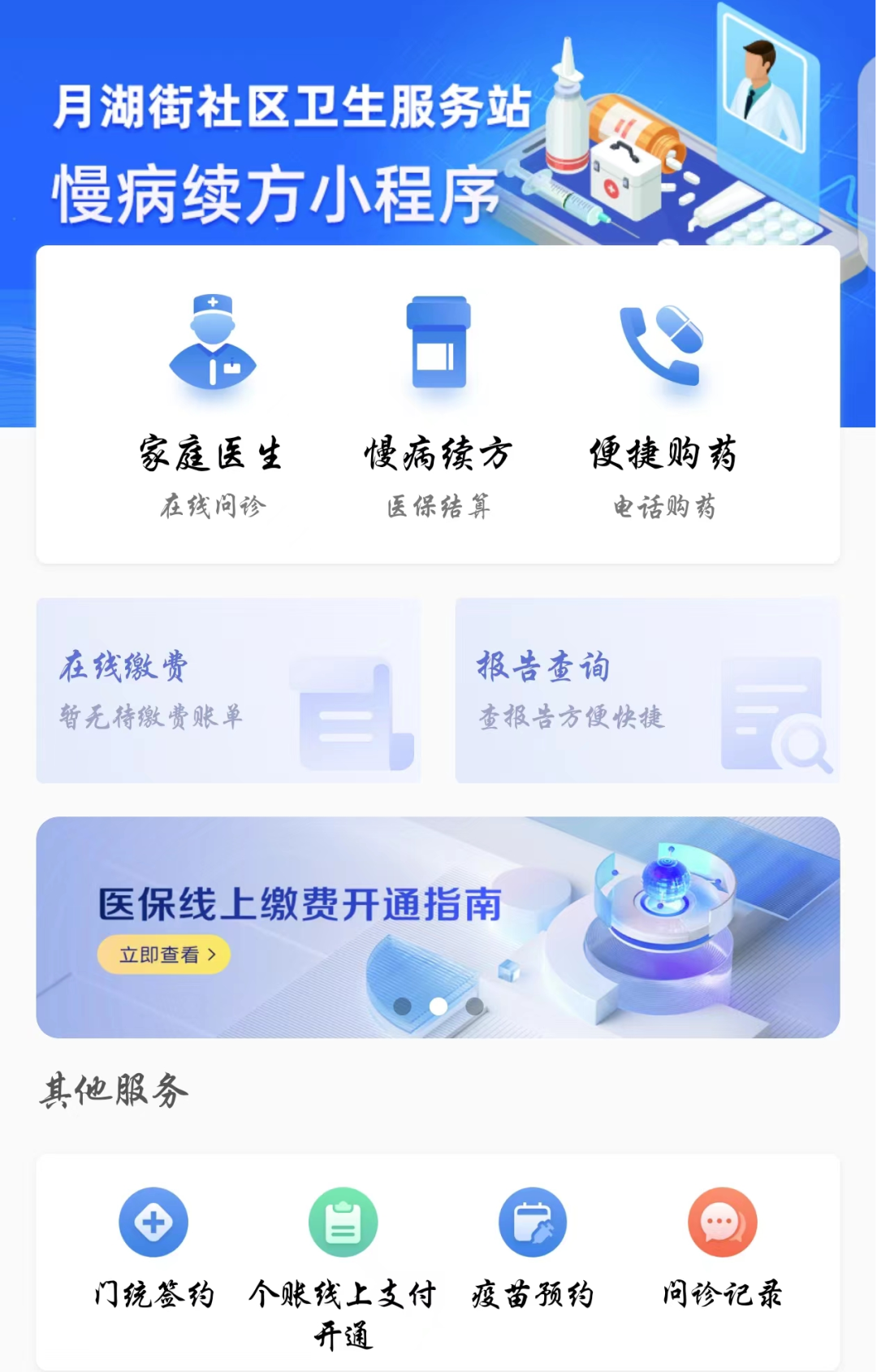 开发“慢病续方”微信小程序。依托医保电子凭证身份认证与线上支付功能,与科技公司合作开发了“慢病续方”微信小程序,患者及其亲属通过小程序即可线上办理挂号、问诊、复诊续方、医保支付、健康咨询等,无需像以前一样,定期到医院窗口排队等候。