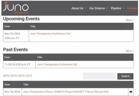 2016年最受关注的两个领域的临床研究接连受挫。先是礼来(Lilly)宣布,其轻度阿尔兹海默病III期临床药物Solanezumab没有达到主要临床终点,宣告失败;紧接着朱诺(Juno)宣布,其处于II期临床阶段的CAR-T免疫治疗方法JCAR015再次导致患者死亡,主动暂停JCAR015的临床研究。截止发稿前,礼来的股价下跌16%,朱诺的股价重挫30%。