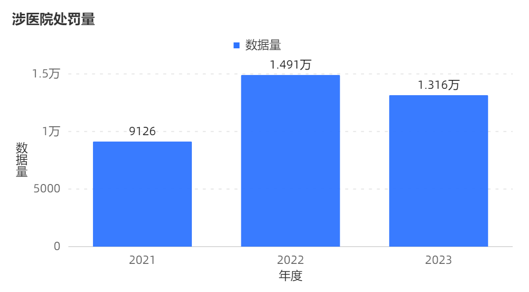 近3年收录涉医院相关处罚数量(2023年处罚量为截止发稿时为止):
