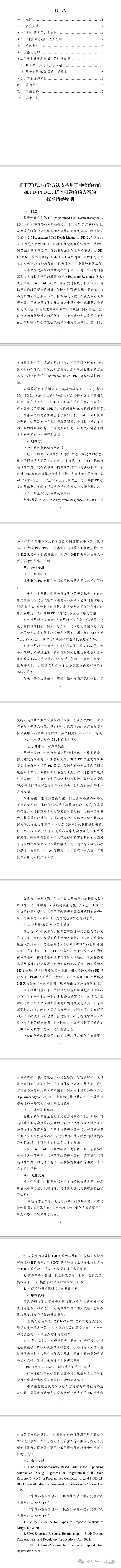 附件:基于药代动力学方法支持用于肿瘤治疗的抗PD-1/PD-L1抗体可选给药方案的技术指导原则
