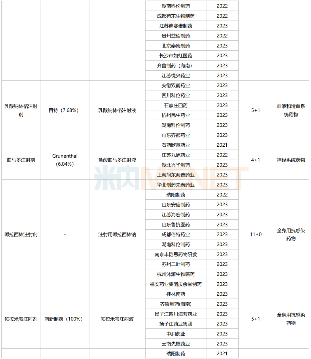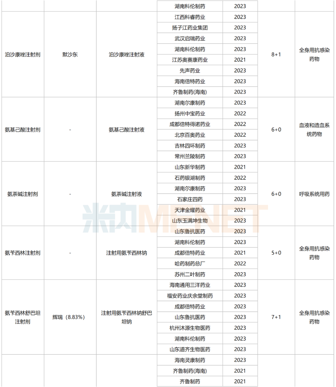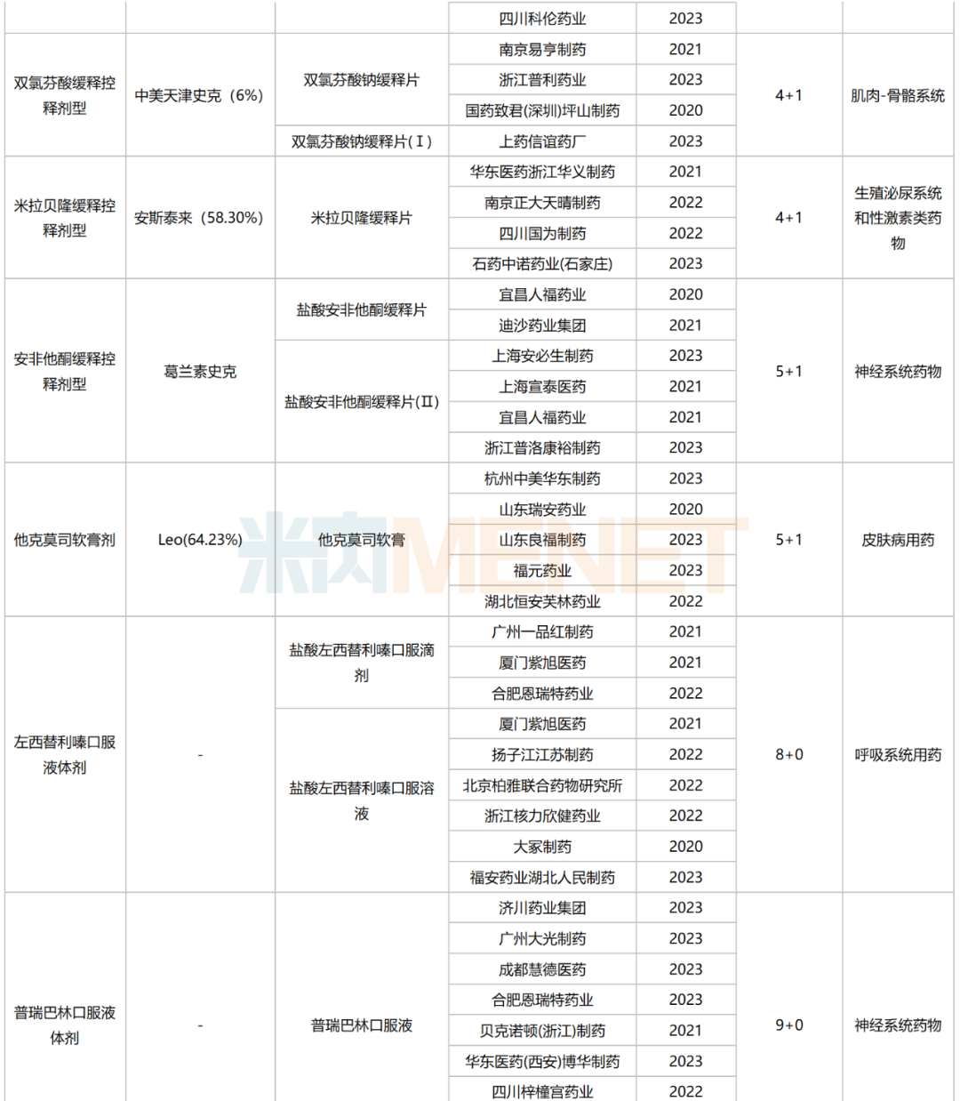 附:符合申报条件企业数达5家及以上且未纳入集采的化药(图源/数据:米内网;数据统计截至12月8日)