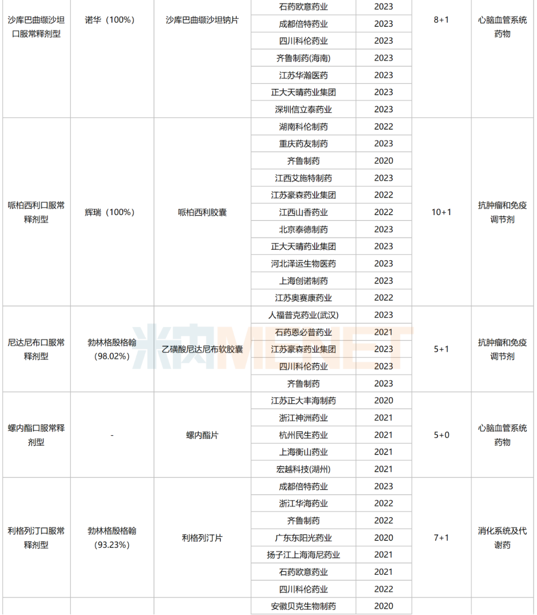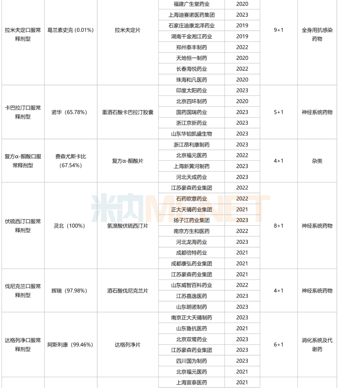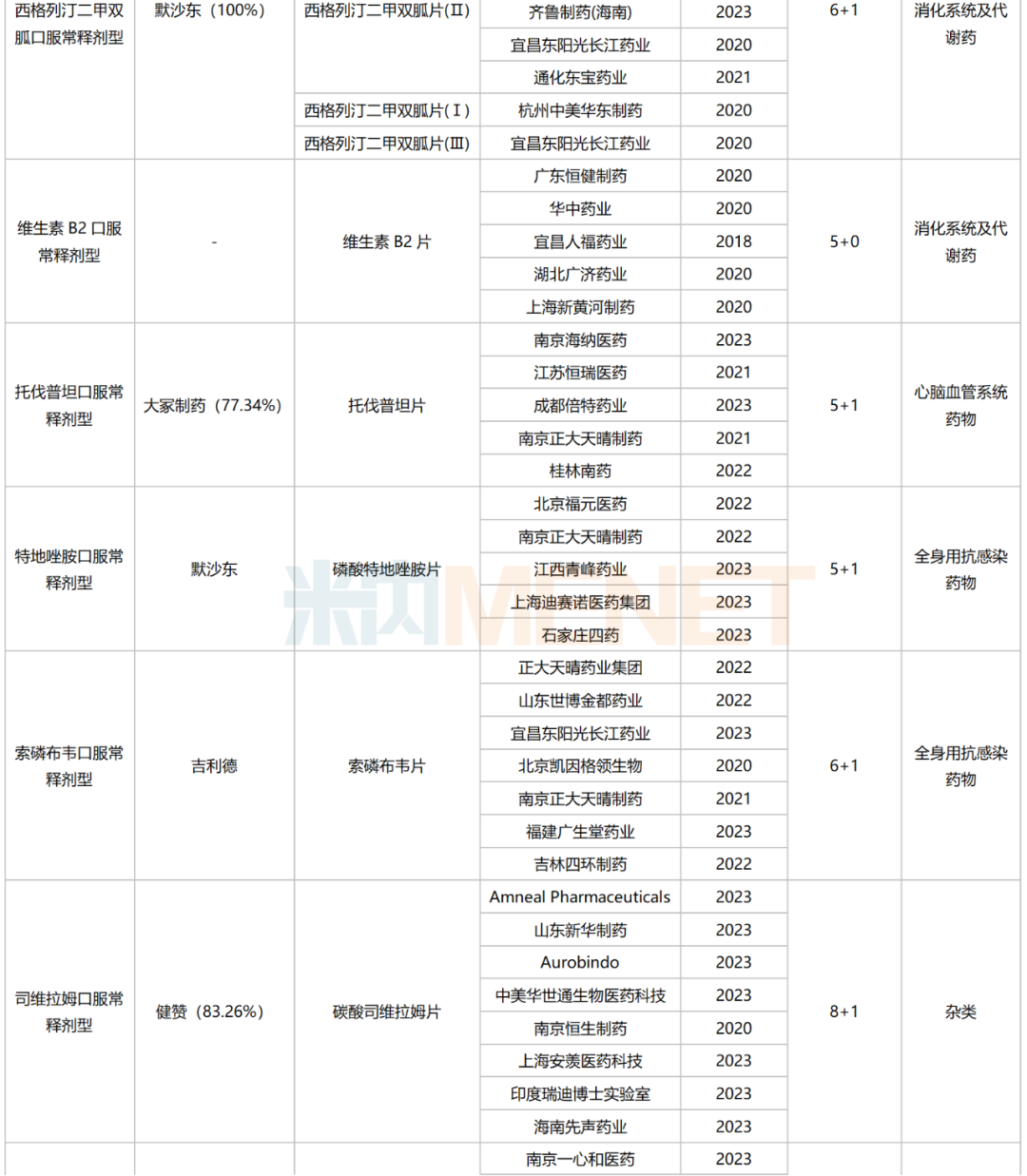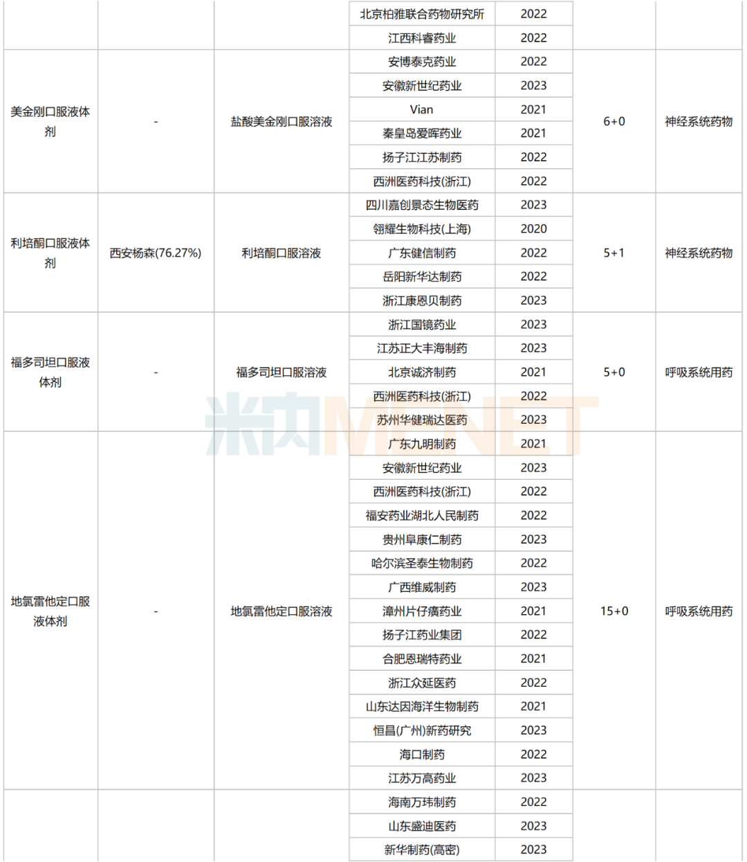 附:符合申报条件企业数达5家及以上且未纳入集采的化药(图源/数据:米内网;数据统计截至12月8日)