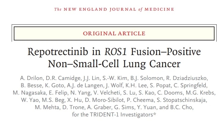 今日,百时美施贵宝(Bristol Myers Squibb)公司的口服酪氨酸激酶抑制剂(TKI)Augtyro(repotrectinib)治疗局部晚期或转移性ROS1阳性非小细胞肺癌(NSCLC)成人患者的注册性临床试验结果在著名医学期刊《新英格兰医学杂志》(NEJM)上发表。这款精准疗法在去年11月获得美国FDA的批准上市。