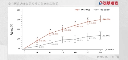而公司在11月的美国风湿病学会口头报告的数据则预示着,其在类风湿关节炎领域拥有极佳潜力。