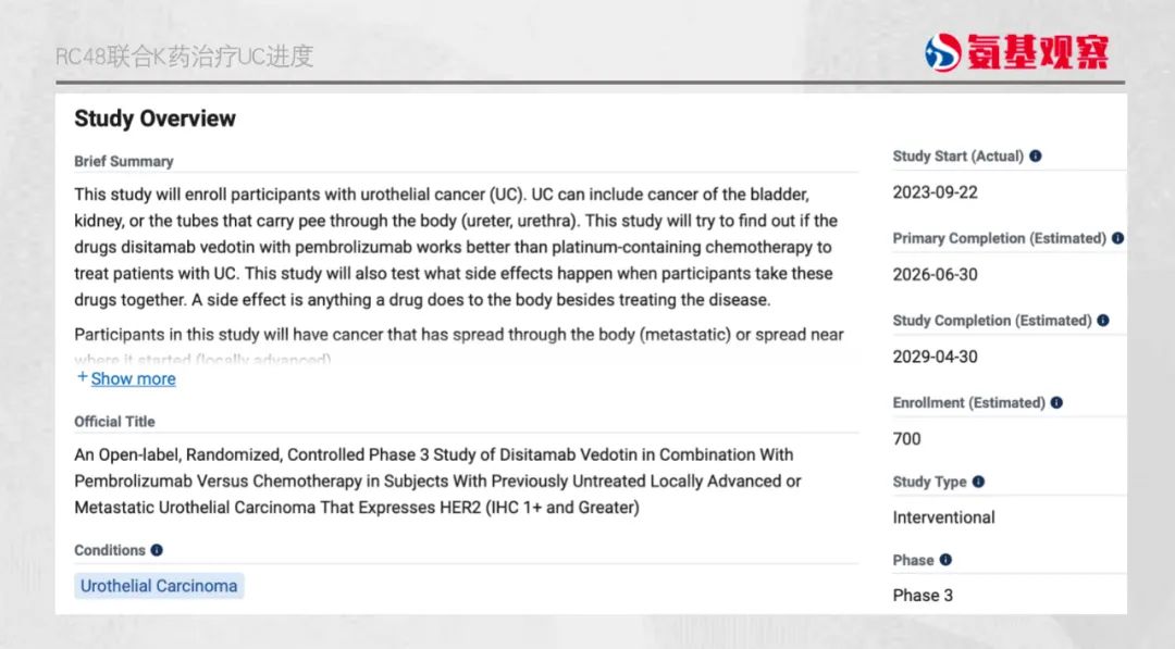 并且,去年下半年,由Seagen主导的RC48联合K药一线治疗HER2阳性UC患者的全球3期临床也已经开启。