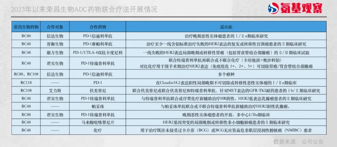 实际上,去年以来公司推进的一系列ADC新布局显示,荣昌生物开始再次“领先”:主要围绕联合疗法展开,与国内不同领域的最强选手强强联合。