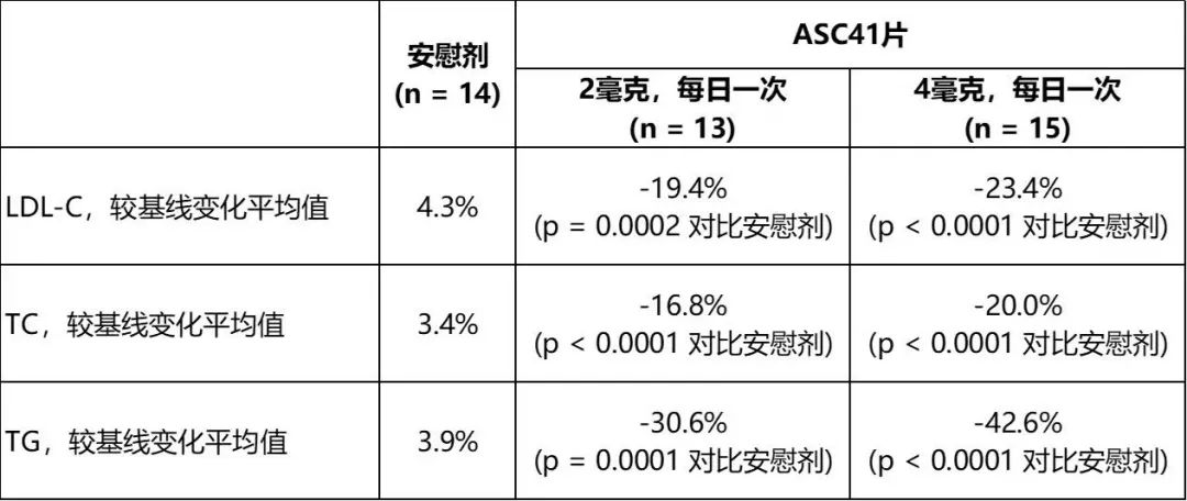第12周血脂较基线降低: