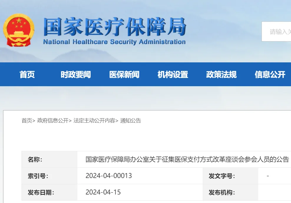 此前,4月15日,国家医保局发文,征集医保支付方式改革座谈会参会人员。通知说明,国家医保局定于本周召开会议,组织集中座谈交流,欢迎广大医疗机构管理者、医护人员以个人自荐方式报名。
