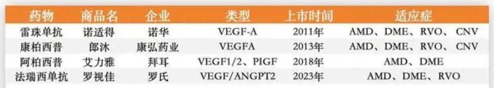 (国内获批的4款抗VEGF药物 图源:动脉网)