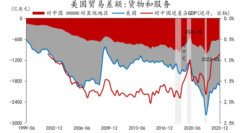 回望过去二十年,随着中国在全球贸易总额中的占比持续攀升,美国对中国的贸易逆差占其GDP的比重在今年持续攀升,相似的历史韵脚在此背景下不断酝酿。